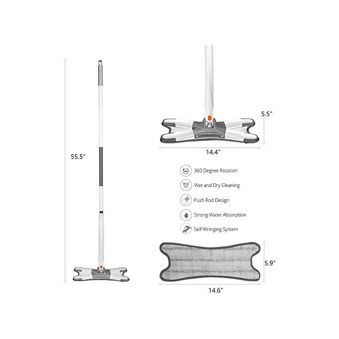 - La tête rotative à 360° et la conception en forme de X permettent de pousser facilement le tampon en microfibre dans les coins, les pieds de meubles, les rainures et tous les coins difficiles à atteindre. Dites adieu aux coins lourds et sales!
