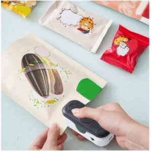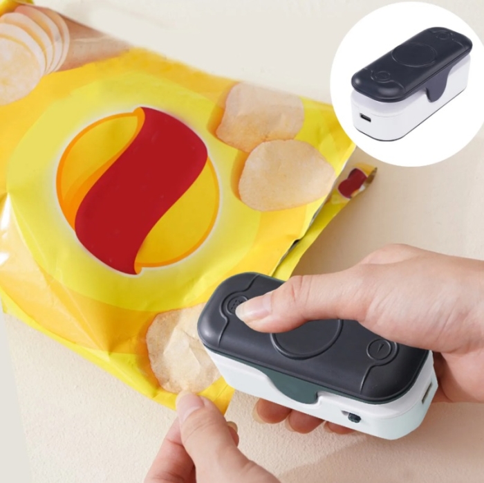 - Conception : Le scelleur est de petite taille et léger, ce qui le rend facile à transporter et à ranger. Il peut être équipé d’une bande magnétique pour être fixé sur un réfrigérateur ou d’autres surfaces métalliques, et certains modèles sont rechargeables par USB.